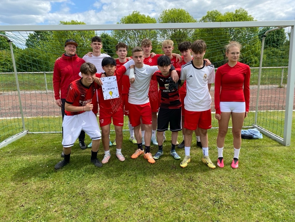 Das ÖDG wurde dabei von einem 11-köpfigen Team bestehend aus zehn Schülern und einer Schülerin der 9. und 10. Klassen (siehe Foto) sowohl im sportlichen Kontext als auch in Bezug auf Fairplay würdig vertreten. Farblich entschieden sich die Schülerin und Schüler für die Repräsentation des Europastaates Dänemark in rot-weißer Spielkleidung. Nach spannenden und nervenaufreibenden Partien in der Gruppen- und Play-Off-Phase gelang es dem ÖDG-Team, sich für das Finale zu qualifizieren. In einem spannenden Finalspiel, welches erst durch ein Neunmeterschießen entschieden werden konnte, erreichte unser Team einen starken 2. Platz. Neben den Aktiven und Ausrichtern des Albert-Einstein-Gymnasiums soll an dieser Stelle auch nochmal den Kolleginnen und Kollegen gedankt sein, die den Freistellungen der aktiven Repräsentanten des ÖDG zugestimmt haben.
