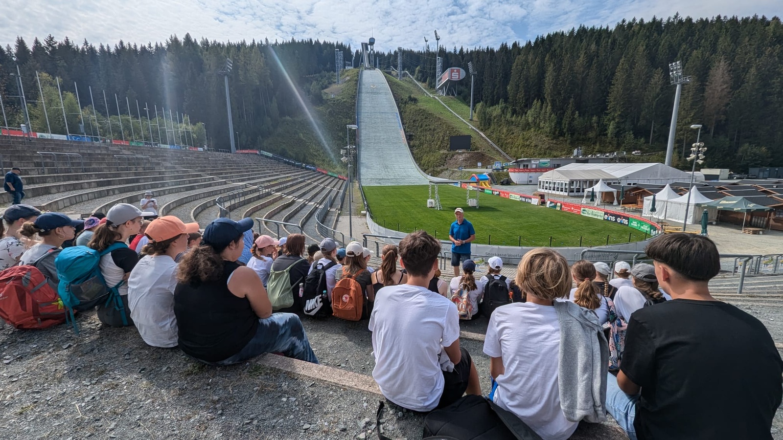 In Klingenthal steht eine der modernsten Skischanzen Europas, die Vogtlandarena. Da viele unserer Schülerinnen und Schüler wintersportbegeistert sind, war die Führung mit Ost-Ski-Legende Jürgen Thomas für viele ein Highlight.