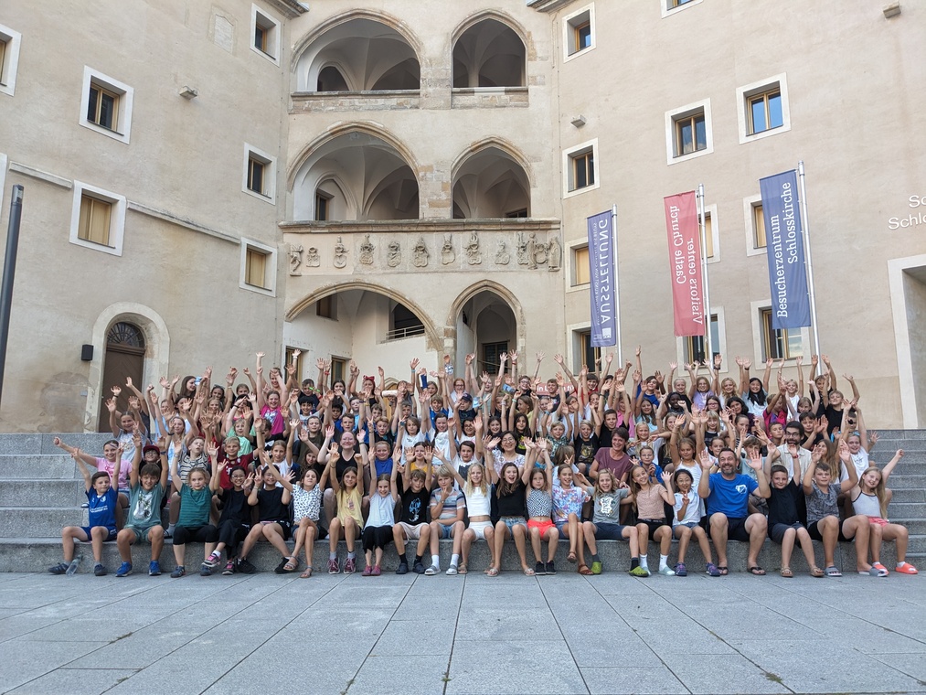 Vom 02.-06.09.24 waren 110 Schüler und Schülerinnen unserer 5ten Klassen unterwegs, um sich bei gemeinsamen Aktionen besser kennenzulernen, aber auch, um viel Neues über die Stadt Wittenberg und ihre interessante Geschichte zu erfahren. Begleitet wurden sie von ihren Klassenleitern Frau Schubert, Frau Burghardt, Frau Zhoshkun und Herrn Lippelt, von Frau Kiesendahl und zwei Vätern von Schülerinnen der 5c.