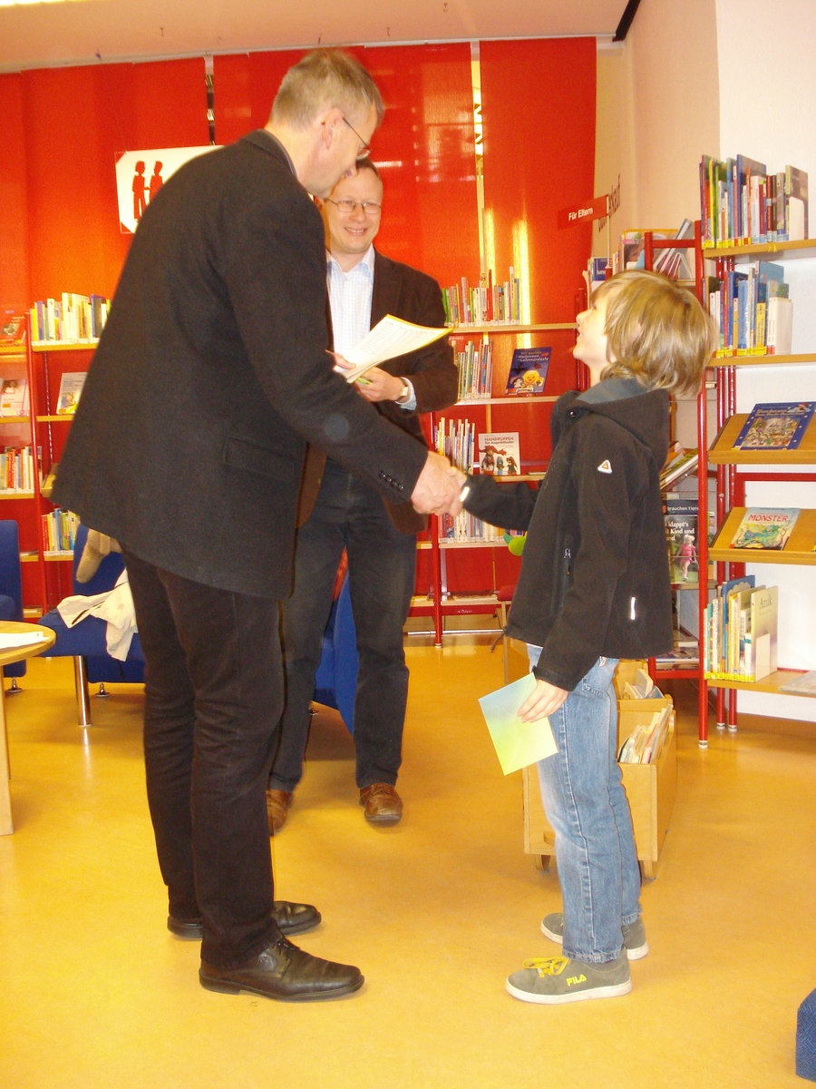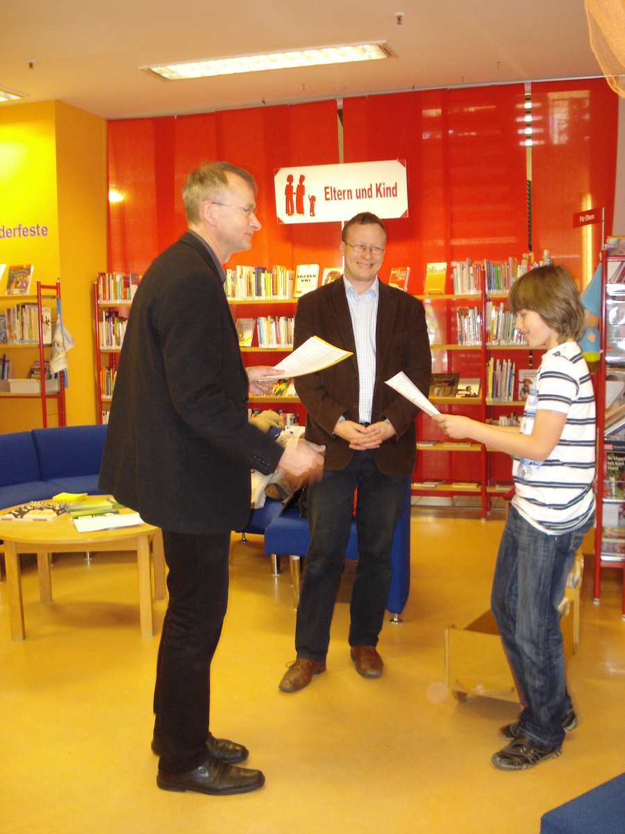 Zur Zeit ist die kleine Ausstellung der Preisträgerarbeiten in der Kinderbibliothek am Breiten Weg noch zu sehen.