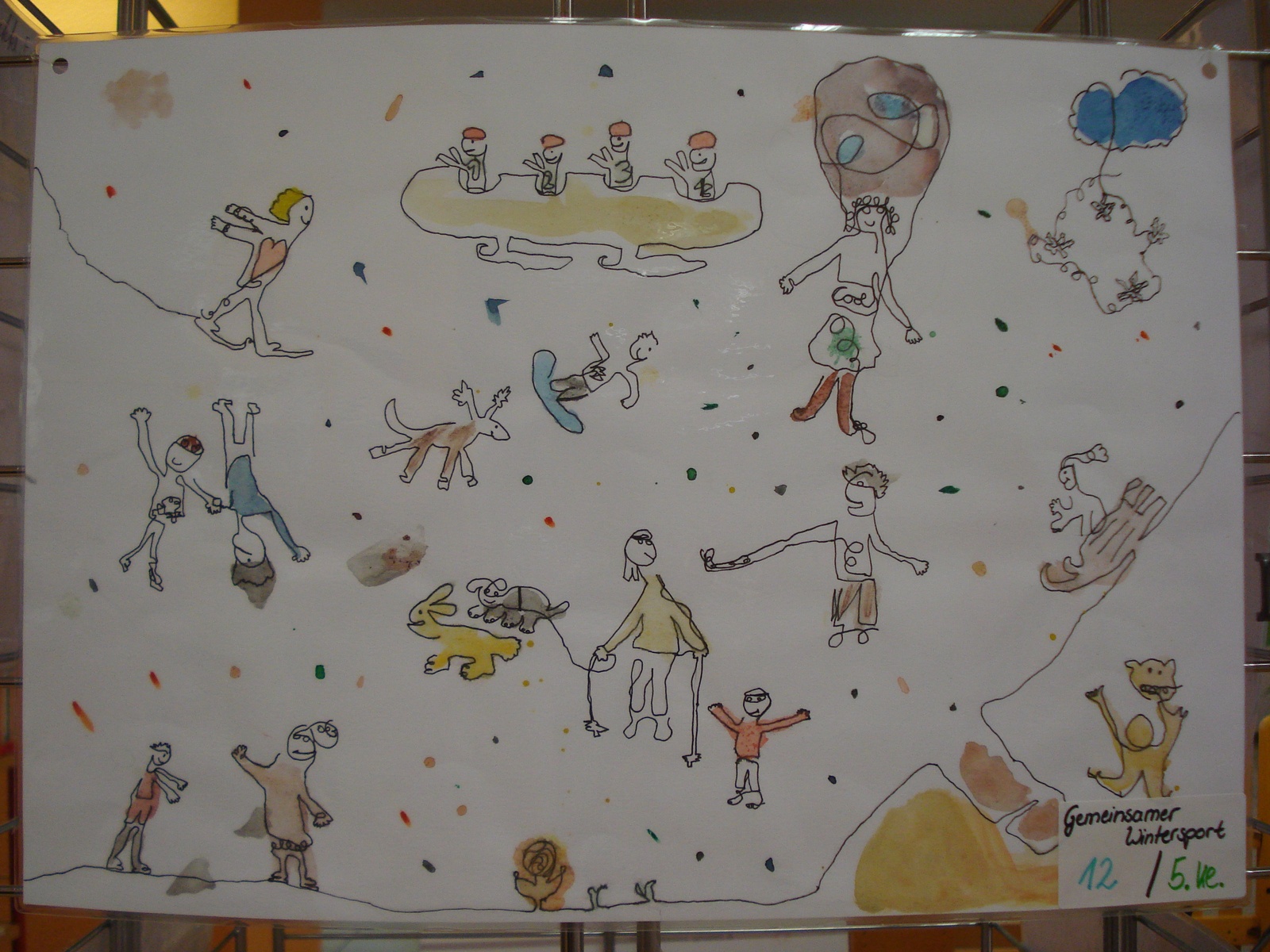 Im Kunstunterricht haben Schüler/innen der Klassen 5a und 5b Deckfarben- arbeiten und aquarellierte Einlinienzeichnungen zum Malwettbewerb anlässlich der Woche für das Leben erstellt. Dabei haben die Teilnehmer ihre Gedanken zum generationsübergreifenden Miteinander in eine eigene Bildsprache gebracht.