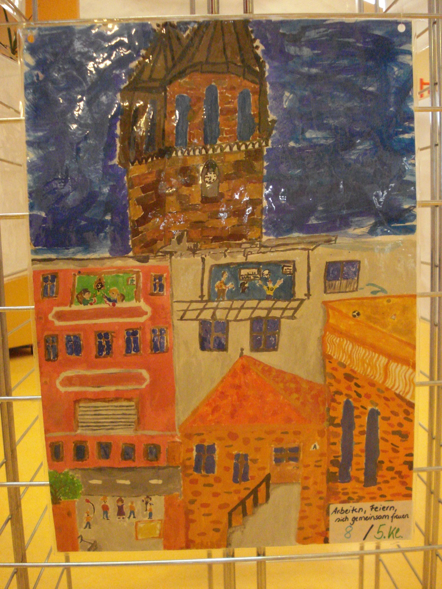Bei der Evangelischen Aktionsgemeinschaft für Familienfragen Sachsen-Anhalt e.V. sind 200 Arbeiten eingegangen. Die Schüler/innen des Ökumenischen Domgymnasiums haben 13 Preise errungen. Leon Steinicke hat den 2. Platz belegt mit seinem Deckfarbenblatt "Arbeiten, feiern, sich gemeinsam freuen". Die anderen Preisträger sind Malte Sandmann mit 2 Werken, Charlotte von Elsner, Trang Duong Huyen, Arthur Wittler, Nina Drescher, Karolin Schubert, Cordula Röpke, Magdalena Gerste, Eva Berger, Leona Gottschalk und Denise Brandt.