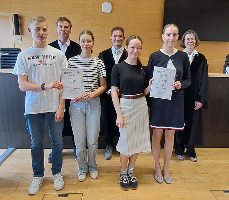 Am 16. Juni 2025 vertraten wir unsere Schule in der zweiten Runde des 7. Jenaer Schüler Moot Courts an der juristischen Fakultät und dem Oberlandesgericht in Jena. Im Voraus bearbeiteten wir einen kniffligen Fall und reichten ein Beratungsschreiben dazu ein. Die besten sechs Teams erhielten eine Einladung nach Jena, darunter auch unser Team aus der 10. Klasse sowie ein Team aus der 11. Klasse. Nach unserer Ankunft in Jena wurden wir zur Universitätsbibliothek geführt, wo wir eine kurze Einführung in den Wettbewerb erhielten. Dort losten wir ebenfalls aus, welchen Standpunkt wir im Moot Court vertreten. Uns wurde ebenfalls erklärt, wie ein Moot Court abläuft. Ein Moot Court ist eine nachgestellte Gerichtsverhandlung. Es gibt einer Kläger- und Beklagtenseite, sowie Richter. Die Kläger- und Beklagtenseite müssen dann jeweils die Richter mit ihren eigenen Argumenten überzeugen. Nach unserer Einführung ging es für uns an die Uni, wo wir von Jurastudenten gecoacht wurden. Nach einer kurzen Mittagspause ging dann auch schon der Moot Court am Oberlandesgericht los. Wir beide waren sehr aufgeregt, uns dieser ungewissen Herausforderung zu stellen. Da wir die Klägerseite vertraten, stellten wir zuerst unsere Argumente vor, danach die Beklagtenseite. Anschließend folgten Fragen der Richterseite. Danach war es vorbei und wir waren erleichtert. Darauf folgte ein zweiter Moot Court.