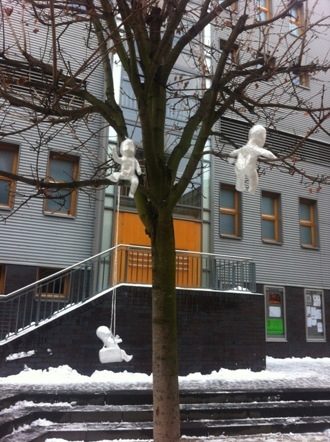 Gestaltung des architektonischen Lebensraumes Schule in Anlehnung an die Streetart durch Schüler des 10er Kunst-Kurses unter Anleitung von Frau Claudia Simon.
