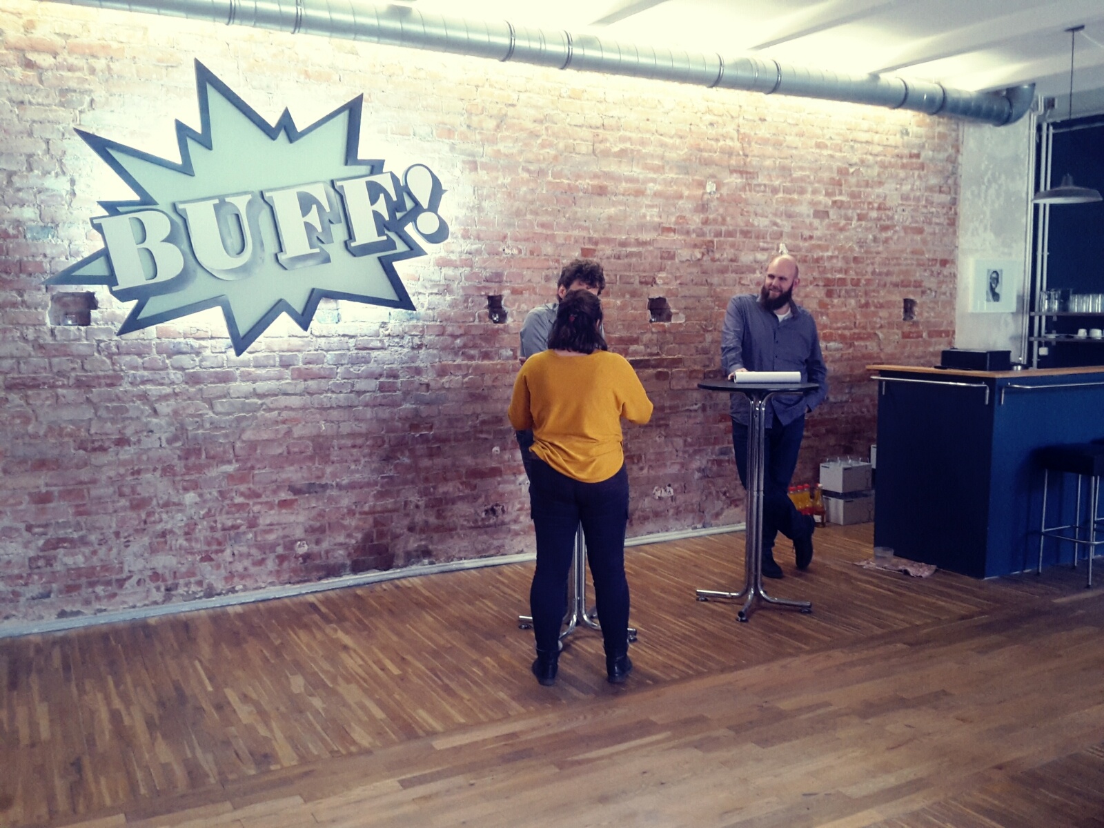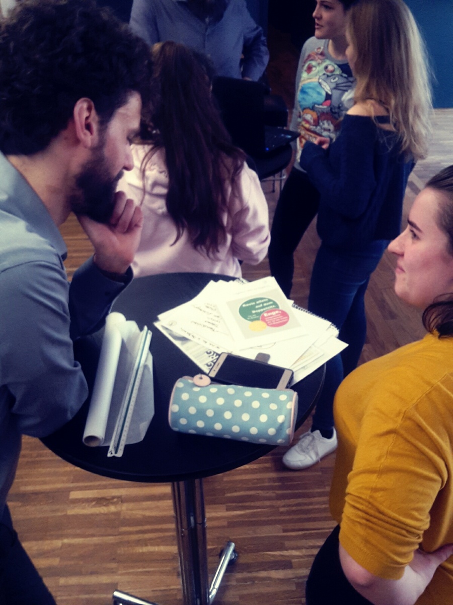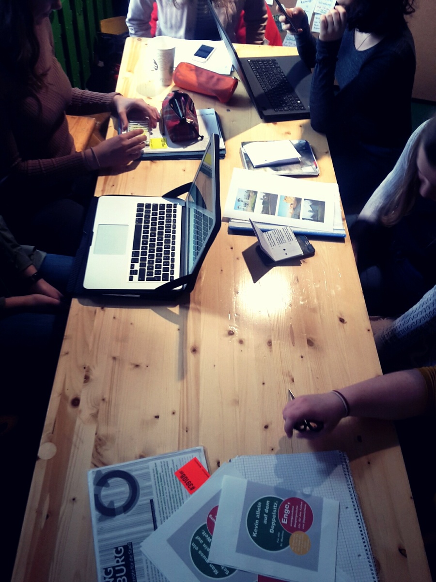 Vor Ort: Schule im Real-Life... Am 10. Januar 2018 war der Kunstkurs 11_3 mit dem Projekt »Updating Magdeburg« für einen Tag zu Gast im Magdeburger Architekturbüro »META Architektur« (Stadtfeld). Im ersten Part bekamen die Schüler_innen gemeinsam mit Studierenden des Industriedesgins der FH Magdeburg-Stendal einen Einblick in die aktuelle Arbeit des Büros sowie über das Know-How, Know-What und Knwo-Why von Ideen-, Entwurfs-, Planungs- und Gestaltungsprozessen. Nach einer Führung durch die Arbeitsräume des Büros startete der zweite Part: Die neun Teams des Kunstkurses stellten in Konsultationen bzw. Expertengesprächen ihre Projektideen für urbane Aufwertungen im Stadtraum Magdeburgs vor und holten sich von den Architekten Feedback, Tipps und Hinweise für die weitere Arbeit an den eigenen Konzepten. Mithilfe dieser Expertisen stand im sich anschließenden dritten Part das Weiterdenken der Teamprojekte und die konkrete Konzeptarbeit bis in den späten Nachmittag hinein auf dem Programm vor Ort .