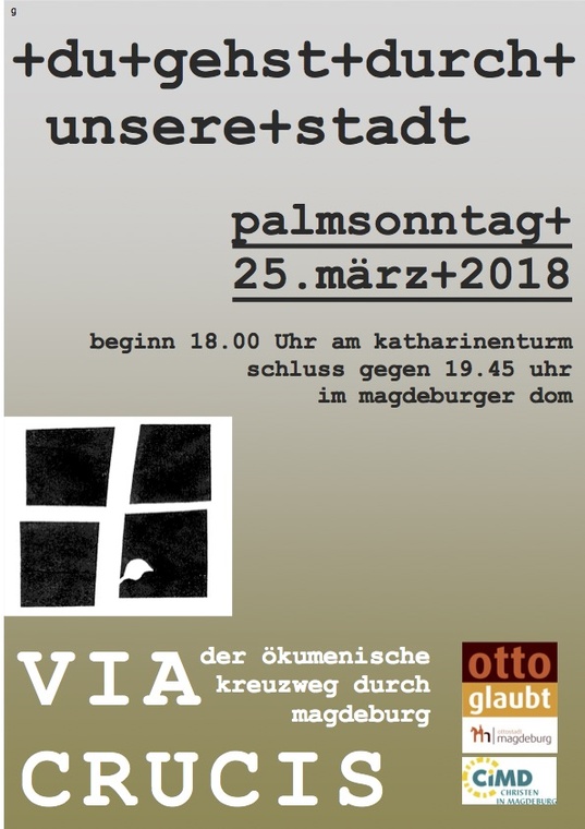Am Palmsonntag, dem 25. März, gehen Christen vieler Magdeburger Gemeinden den schon traditionellen ökumenischen Kreuzweg durch die Stadt. Die christlichen Gymnasien, das Ökumenische Domgymnasium und das katholische Norbertus-Gymnasium, beteiligen sich wie immer und haben wieder gemeinsam eine Station übernommen.