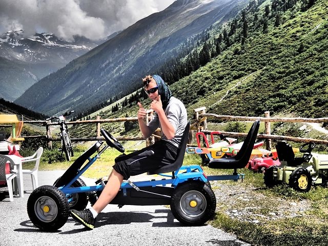 Und so war es jetzt soweit: der letzte Tage, die letzte Hütte, die schwierigste Tour (AdR: ohhhhhh!). Der letzte Tag begann heiß und leider Gottes wurde es auch nicht kühler (AdR: Das hat der Sommer so an sich...). Nachdem wir schließlich am Silvretta-Stausee angekommen waren, begann der Spaß erst wirklich. Bei 30°Celsius (AdR: Lassen wir es vielleicht 21°C gewesen sein – wenn überhaupt) und nach Lucas mindestens „drölfzig“ Grad Steigung bergauf zu fahren ist wirklich kein Zuckerschlecken (AdR: Haben sie aber super gemacht!). Als dann auf den letzten 2km und 400hm die kläglichen Versuche, vor anderen Wanderern den letzten Schein an Professionalität zu wahren, scheiterten, ging es nur noch um eine Sache: Das heile ankommen. Schließlich schafften es 3 Biker, die einfach weiterfuhren, als Frau Krufke und Herr Keune anfingen zu schieben. Endlich wieder ins Bett.