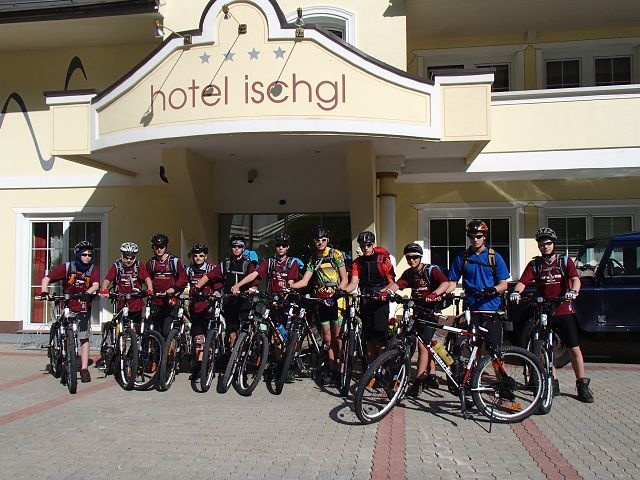 Nachdem alle aus meinem Zimmer aufgewacht waren, haben sie für mich gesungen. Es gab heute schon um 6.30 Uhr Frühstück und wiederum wurde gesungen (diesmal alle!!!) So wie vor jeder Hütte wurde ein Gruppenfoto gemacht. Diesmal durften die Biker vor uns losfahren. Und wir Wanderer…naja…wir waren mal wieder die letzten im Hotel.