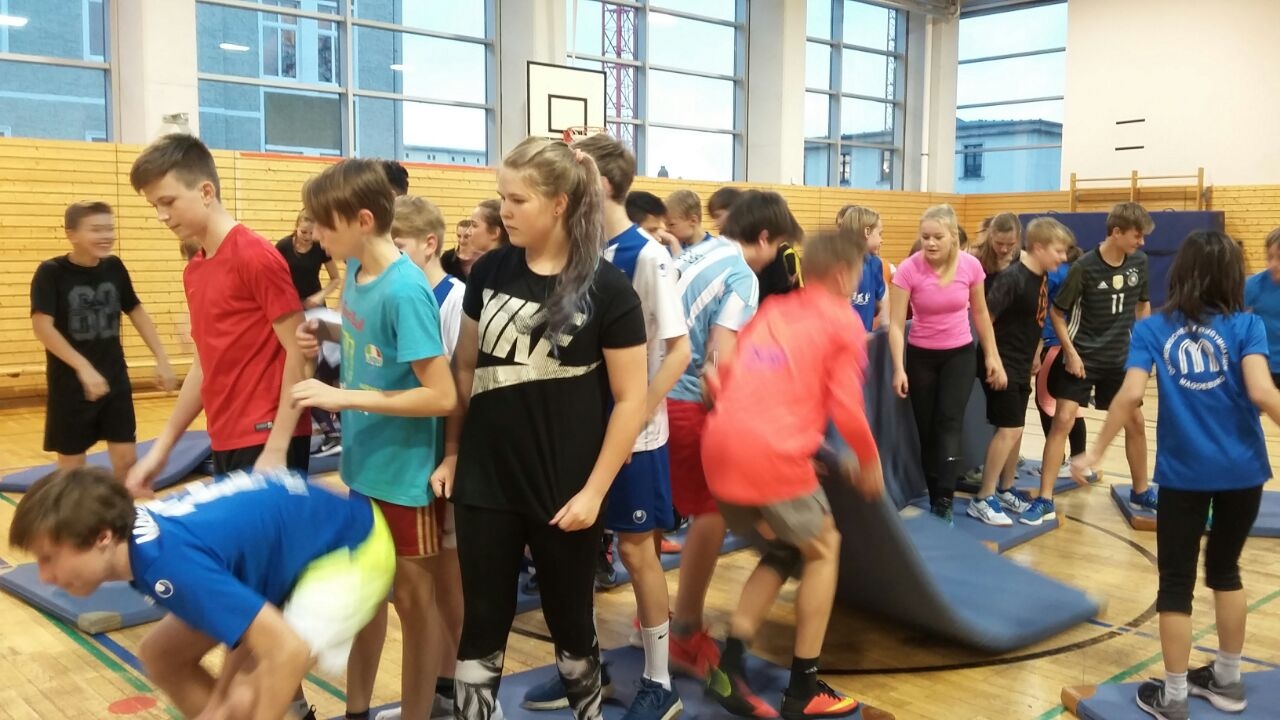 Als erstes möchten wir Ihnen einen Rat geben. Fahren Sie stets 3:30 Uhr mit dem Auto zur Arbeit. So leer haben Sie Magdeburg noch nicht erlebt. Nachdem unsere Eltern und Herr Constabel unsere müden Gesichter auf einem Foto festgehalten haben, stürmten wir alle in den Bus. Als wir nach 2h eine Pause einlegten, fanden auch die ersten Toilettengänge statt. Einer entpuppte sich jedoch als Reinfall. Eine Schülerin hatte ihr Geld dort vergessen und schlich sich durch den Kindereingang zurück. Eine Putzfrau vereitelte dies jedoch. Wir standen auch glücklicherweise nur einmal im Stau und zwar, wie könnte es anders sein, in München. Nach „nur" 10 Stunden Fahrt erreichten wir den Kletterwald in Sautens. Dieser war umgeben von atemberaubenden Bergen. Nach einer kurzen Einweisung startete die Runde im Hochseilgarten. Als erstes flogen wir über einen reißenden Bach. Es war eines der spektakulärsten Dinge, die ich je erlebt habe. Darauf folgten weitere Flying Foxes. Außer Seilbahnen gab es natürlich auch andere Übungen: zum Beispiel den Affen – mit beiden Händen hielt man sich an Schlaufen fest und die Beine hingen auf einer Höhe mit den Armen. Nach langen Überzeugungsreden von einem Kletterprofi konnte das Hindernis überwunden werden. Bis die letzten Schüler fertig waren, war es schon 17 Uhr und die Reise ging weiter in das „Hotel Ischgl". Die Zimmer waren nahezu luxuriös mit ihren Fernsehern, Balkonen und Badewannen. Das Abendessen war sehr frisch mit Salat, Nudeln und traditionell Skiwasser. Der Nachtisch war raffiniert und schön dekoriert – perfekt für alle ausgehungerten Schüler. Danach wurden die Rucksäcke gepackt, meist mehrmals, weil nicht alles reinpasste. Das Einschlafen ging dann leicht nach der langen Busfahrt. (AdR: Kurzum eine perfekte Einstimmung auf die nächsten drei Tage.)